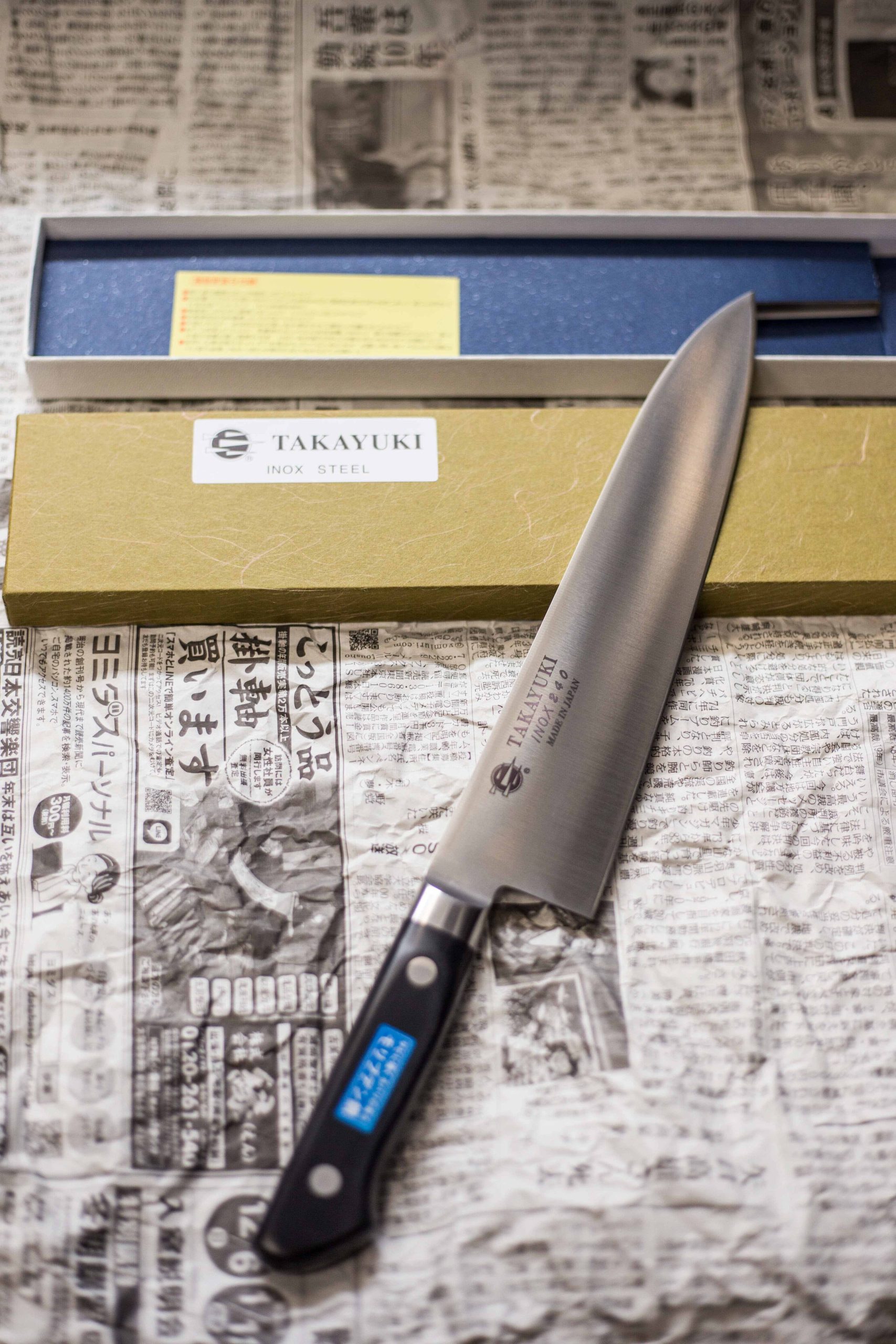 Продуктите от серията Takayuki Inox са професионални ножове със специална молибденово устойчива на корозия стомана. Майсторите довършват ножовете един по един с ръчно шлайфане.