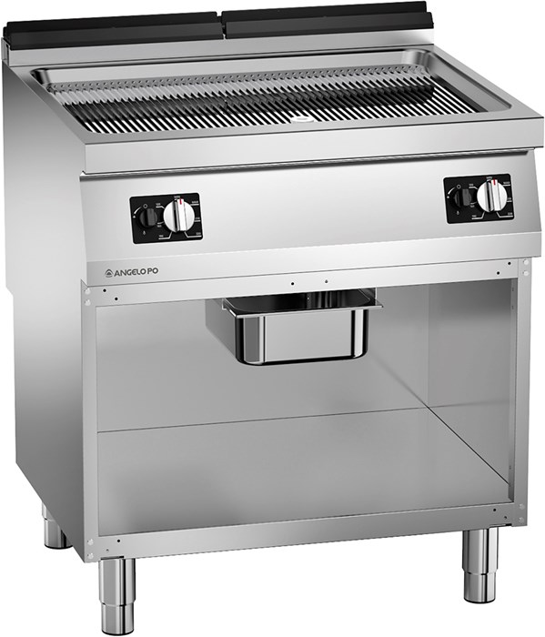 Газова скара от неръждаема стомана AISI 304, плот с дебелина 20/10 мм. Готварска плоча с размери: 730x 530 mm, изработена от стомана Fe510D с повърхностна обработка с твърд хром. Отопление от две независими групи горелки, управлявани от модулиращ термостатен вентил, предпазен термостат. Работна температура (мин-макс): 100-280°C. Интегрирано долно чекмедже за събиране на мазнина.Oбща мощност: 14 kW; газ пропан-бутан или метан; Габаритни размери: 800x720x900 мм